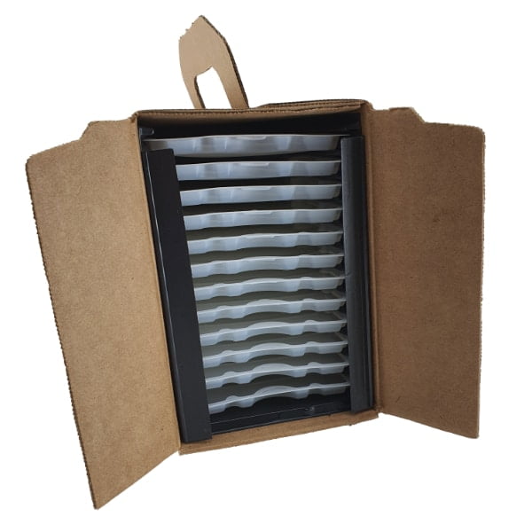Deze ratten lijmplanken zijn voorzien van een dikke lijmlaag op een plastic tray. Er zitten 12 stuks lijmplaten in een doos. Je kunt de lijmplaten er eenvoudig in en uit schuiven. In de doos zit een cassettesysteem. De afmeting van de kleefplaten zijn 24 x 11cm.
