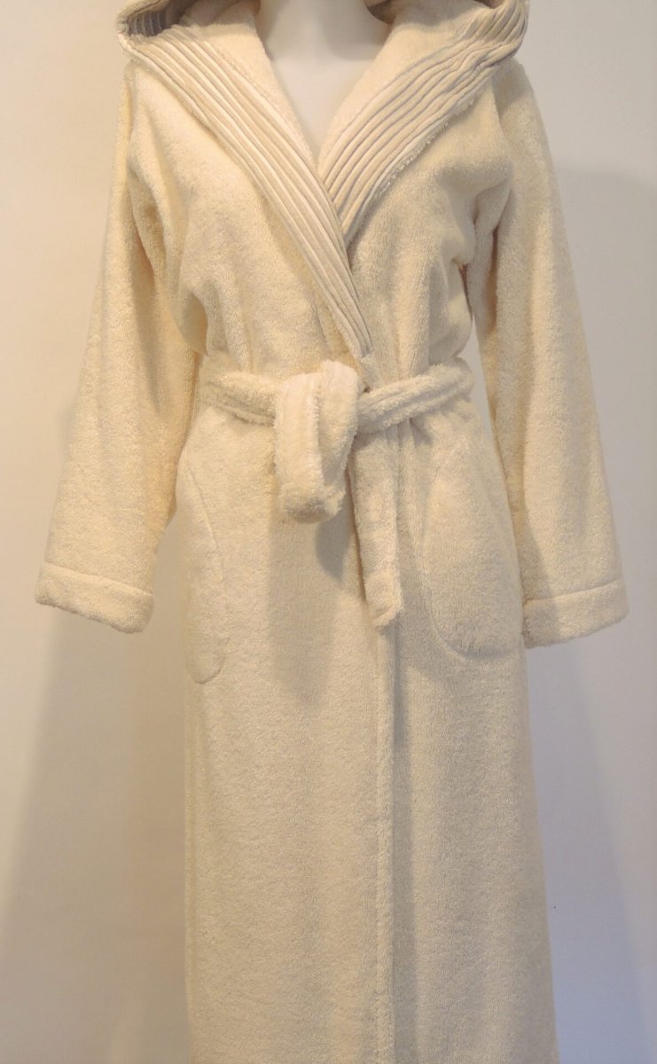 Extra lange badjas met capuchon voor dames en heren, superluxe kwaliteit badstof, 100% katoen. Deze zware kwaliteit badstof van egyptische katoen is zacht en blijft zacht, ook na vele wasbeurten. Een luxe badjas om in te wonen! Ondanks de dikke stof is het een elegant model, door de slanke mouwen en de steekzakken aan de zijkant. Prachtig cadeau voor de feestdagen!