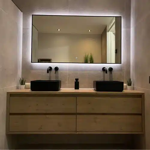 Dit badkamermeubel is gemaakt van geschaafd hout. Het meubel wordt standaard behandeld met drie lagen lak. Dit maakt het uitermate geschikt voor in de badkamer en makkelijk schoon te houden. Het meubel kan geleverd worden in verschillende kleuren. Dit meubel is behandeld in de kleur: oud grijs.