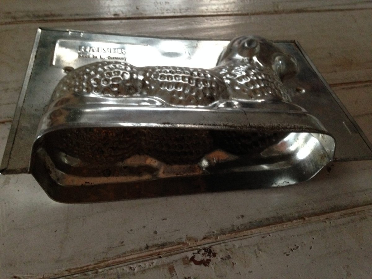 Oude lammetjes chocoladevorm, heel decoratief in de brocante keuken!