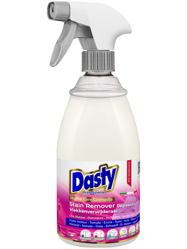 Dasty Vlekkenverwijderaar is een specifiek product voor de behandeling van hardnekkige vlekken. Dasty Vlekkenverwijderaar is een product op basis van oppervlakte-actieve stoffen en enzymen, gemaakt voor de behandeling van vlekken op textiel voor het wassen in de wasmachine. Het is vooral effectief op vetvlekken, terwijl voor de oxideerbare vlekken (thee, gras, rode wijn, koffie) andere typen, op zuurstof gebaseerde, producten de voorkeur hebben.