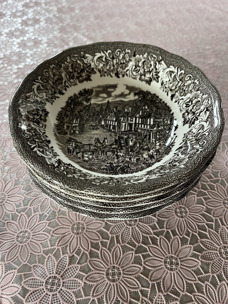 Set van vijf Engelse dessert-schaaltjes.