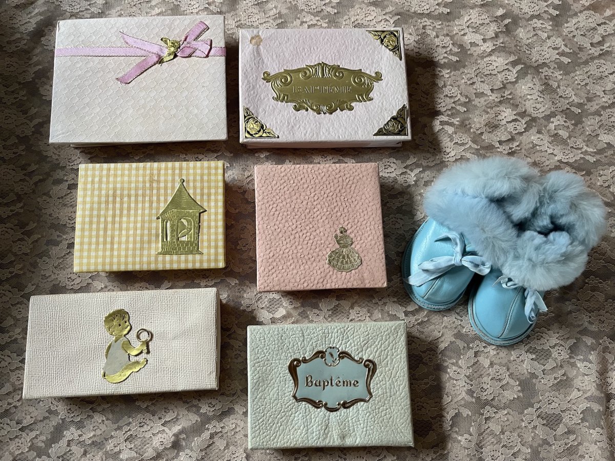 Oude franse doopsuikerdoosjes. Verschillende soorten en maten. de grootste is; 15-12cm, en de kleinste; 12-9 cm. Geef even via een berichtje aan welke je graag wilt hebben. De prijzen variëren van 3,95 tot 8,95.