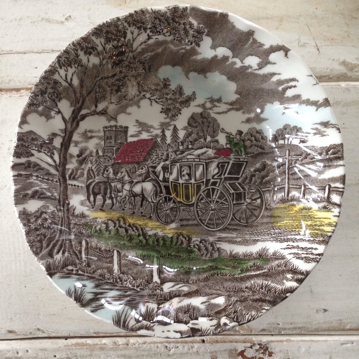 Mooi klein engels schaaltje met ingekleurde afbeelding.
