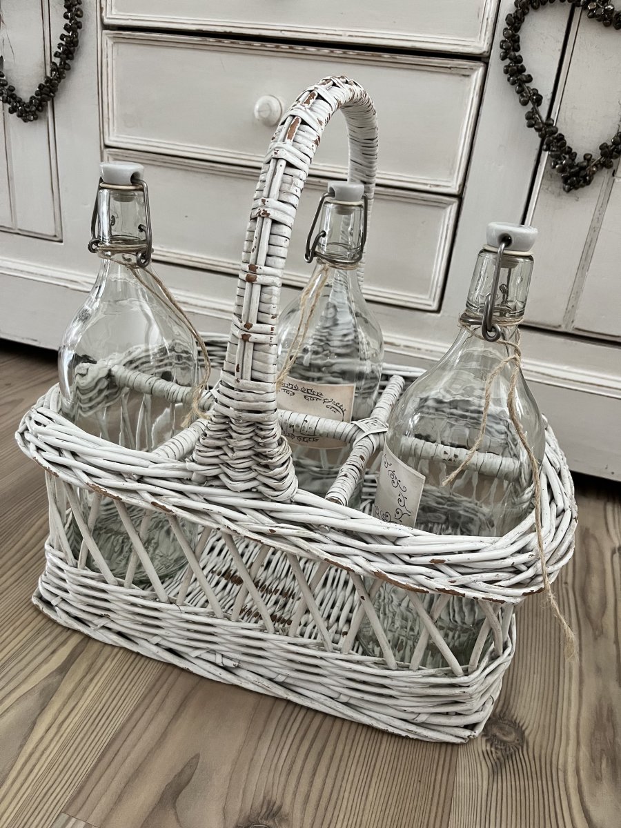 Rieten flessenrek, erg leuk bij de achterdeur…