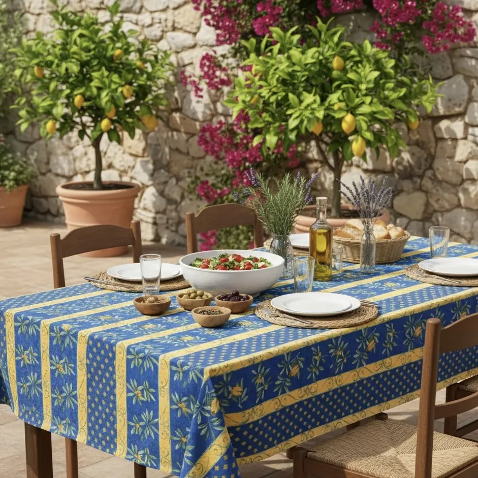 Tafelkleed Cigales blauw is door Bellebien rechtstreeks voor u uit Zuid-Frankrijk geïmporteerd.