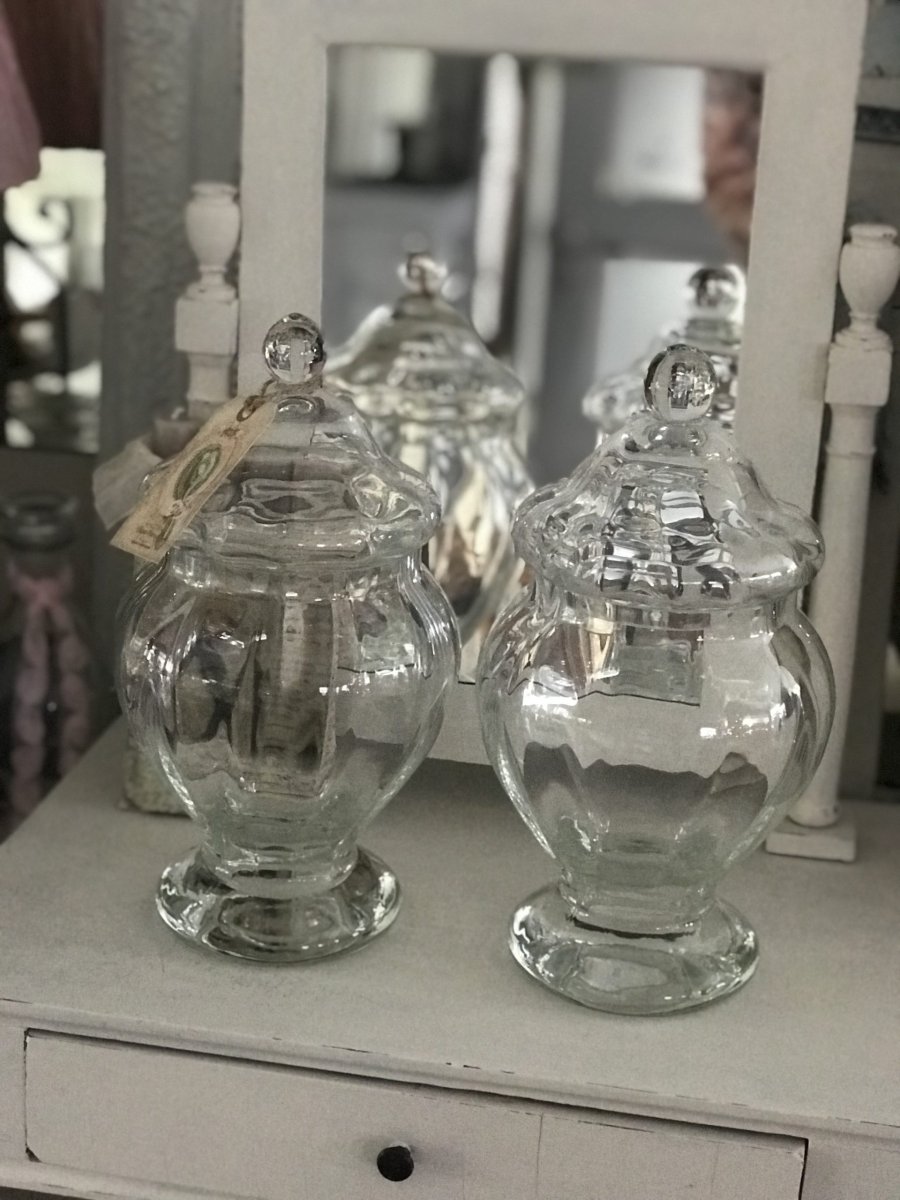 Prachtige zware glazen potten. Prijs per twee.