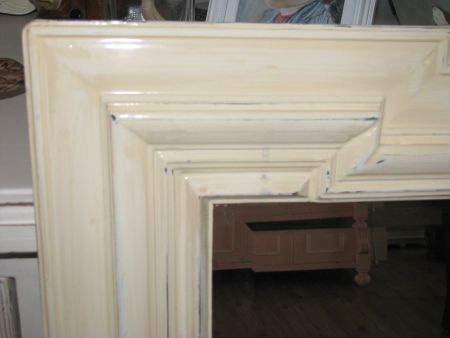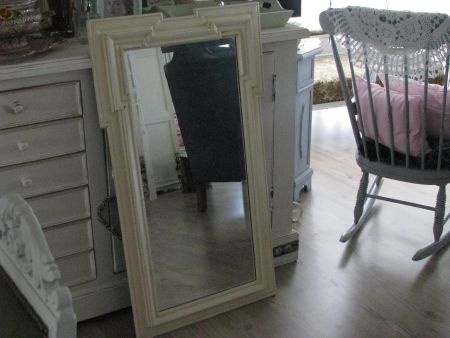 Heel aparte grote oude spiegel met facet geslepen glas. 1.10 hoog en 0.63 breed.