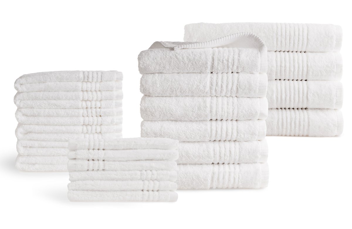 - Compleet 22 delig set bestaat uit: 4 badlakens, 6 handdoeken, 6 gastendoekjes en 6 washandjes