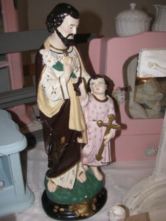 Mooi religieus beeld in aparte kleurstelling.Ong. 35 cm. hoog.