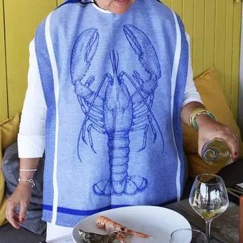 Kreeftenslab blauw, homard bavoir in het Frans, bij Bellebien. U kunt een kreeftenslab bestellen in rood en blauw.