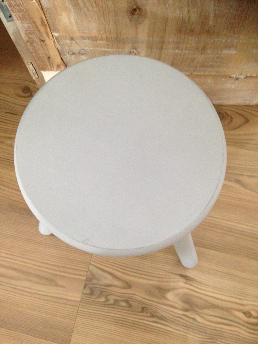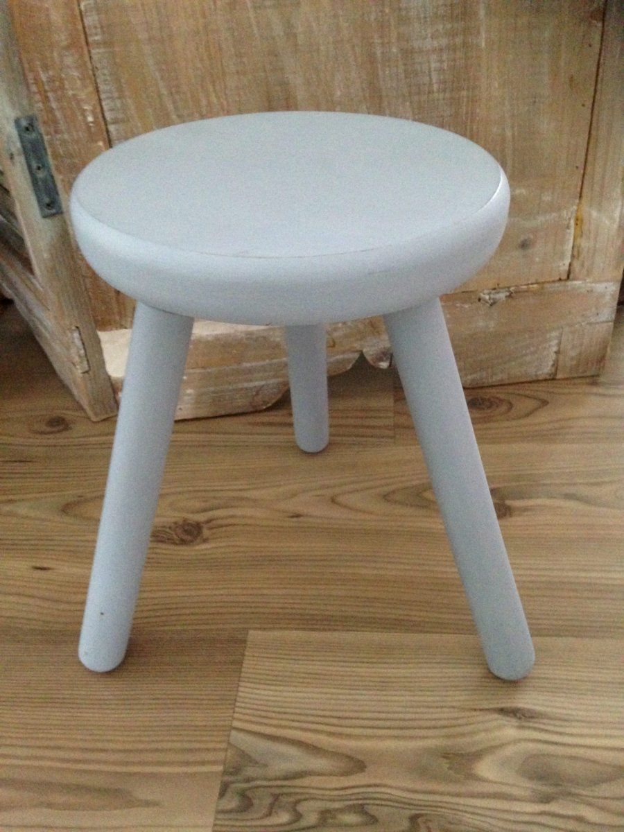 Lichtblauw houten krukje.
