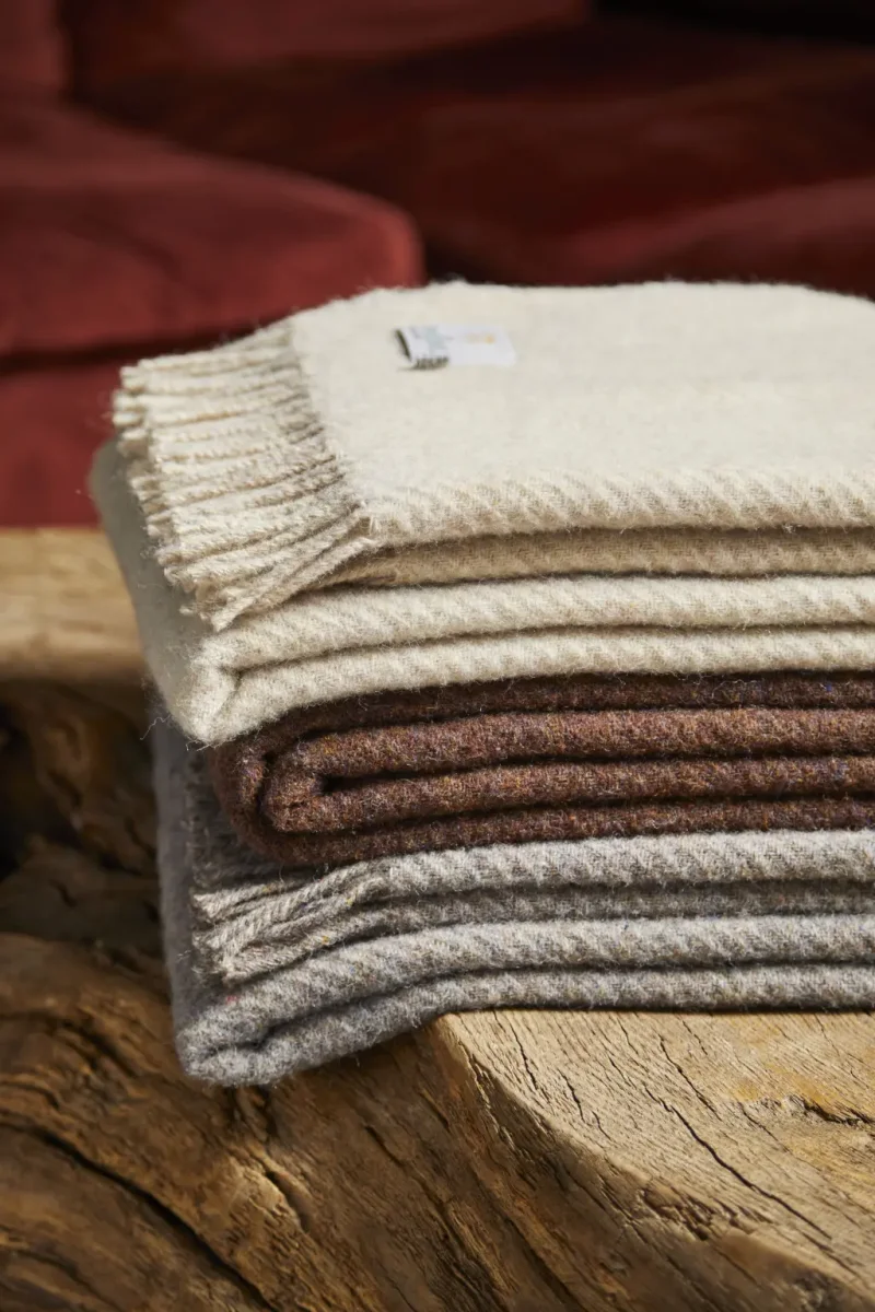 Plaid Diagonal Stripe Latte is door Bellebien voor u geïmporteerd uit Engeland. Deze plaid is voor 50% gemaakt van gerecyclede wol. Een duurzame keus.