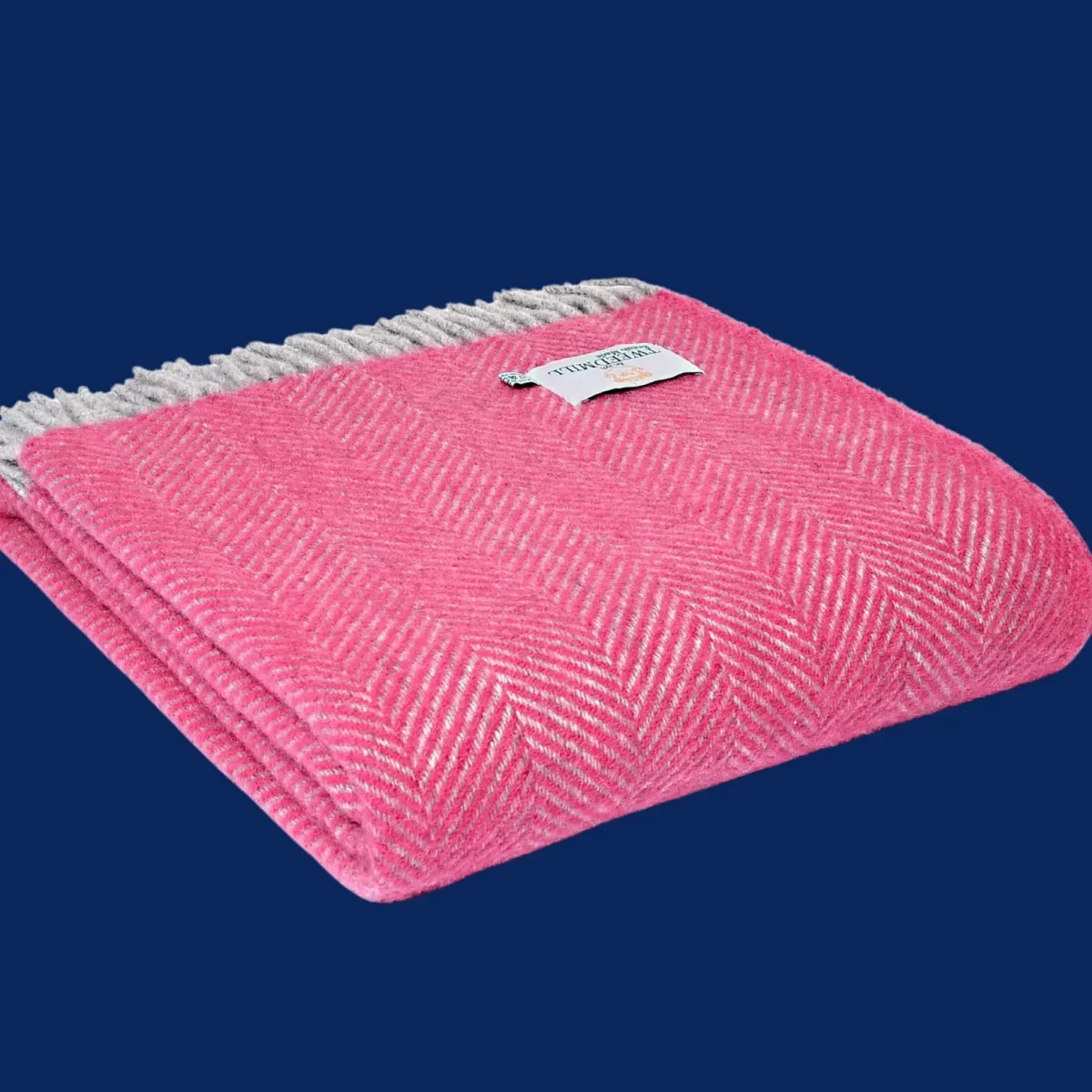 Plaid Fishbone Pink &b Silver is gemaakt van 100% wol en kan op een wolwasprogramma op 20-30° worden gewassen.