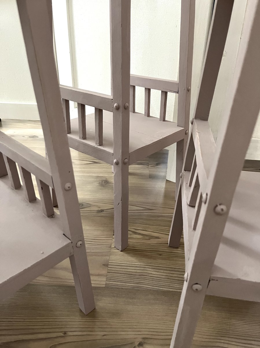 Set plantentafeltjes geschilderd in de kleur tea-rose. Maten; 56,5,29,29 cm. 56,25,25 cm. 76,25,25 cm.