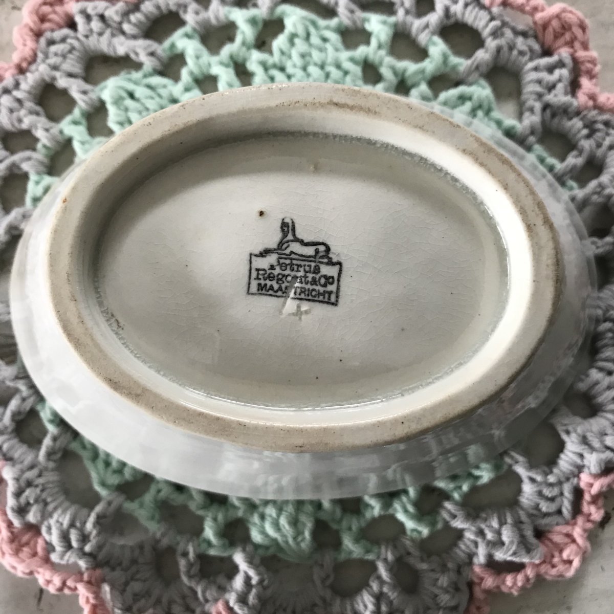 Brocante vorm van Petrus Regout, heeft wat haarscheurtjes, maar dit heeft ook zijn charme…