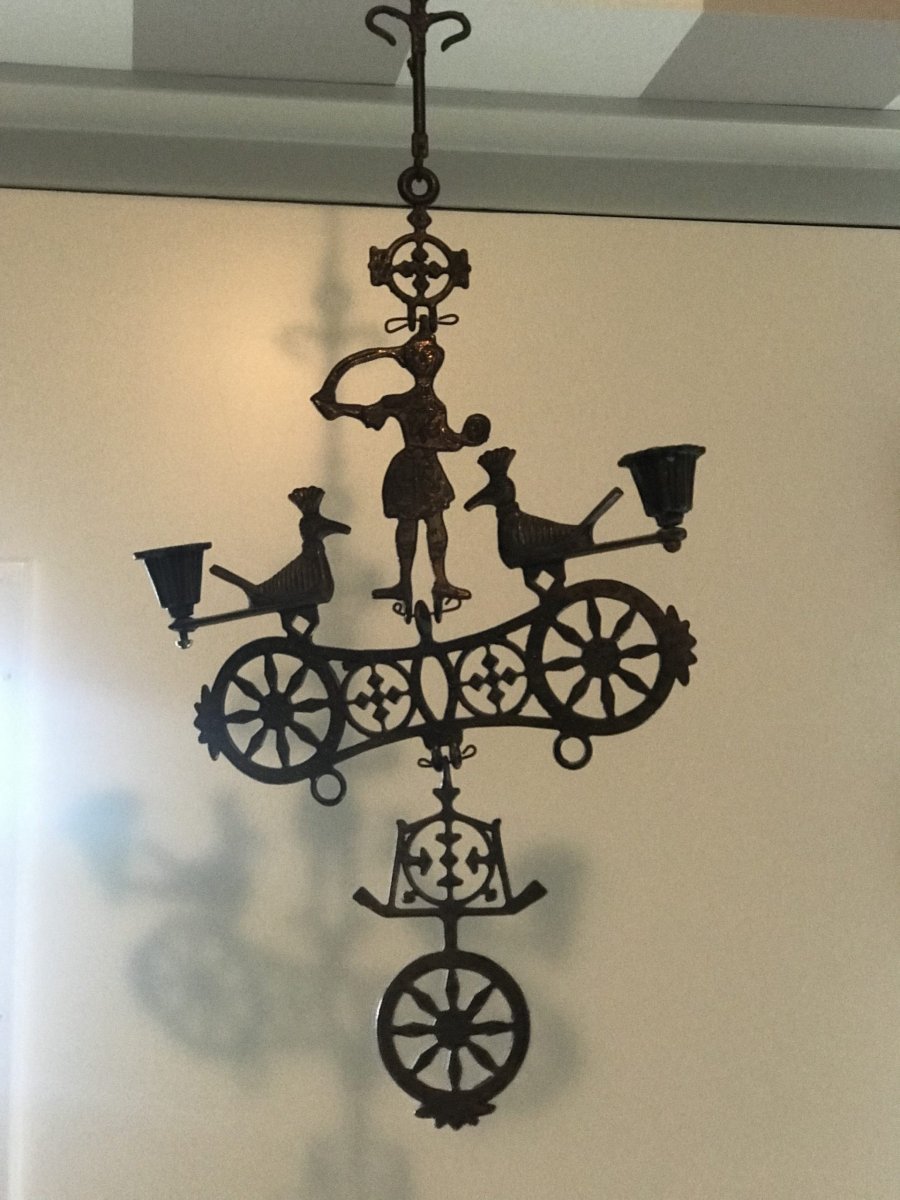 Mooie bewerkte hanger met twee kandelaartjes erin verwerkt.