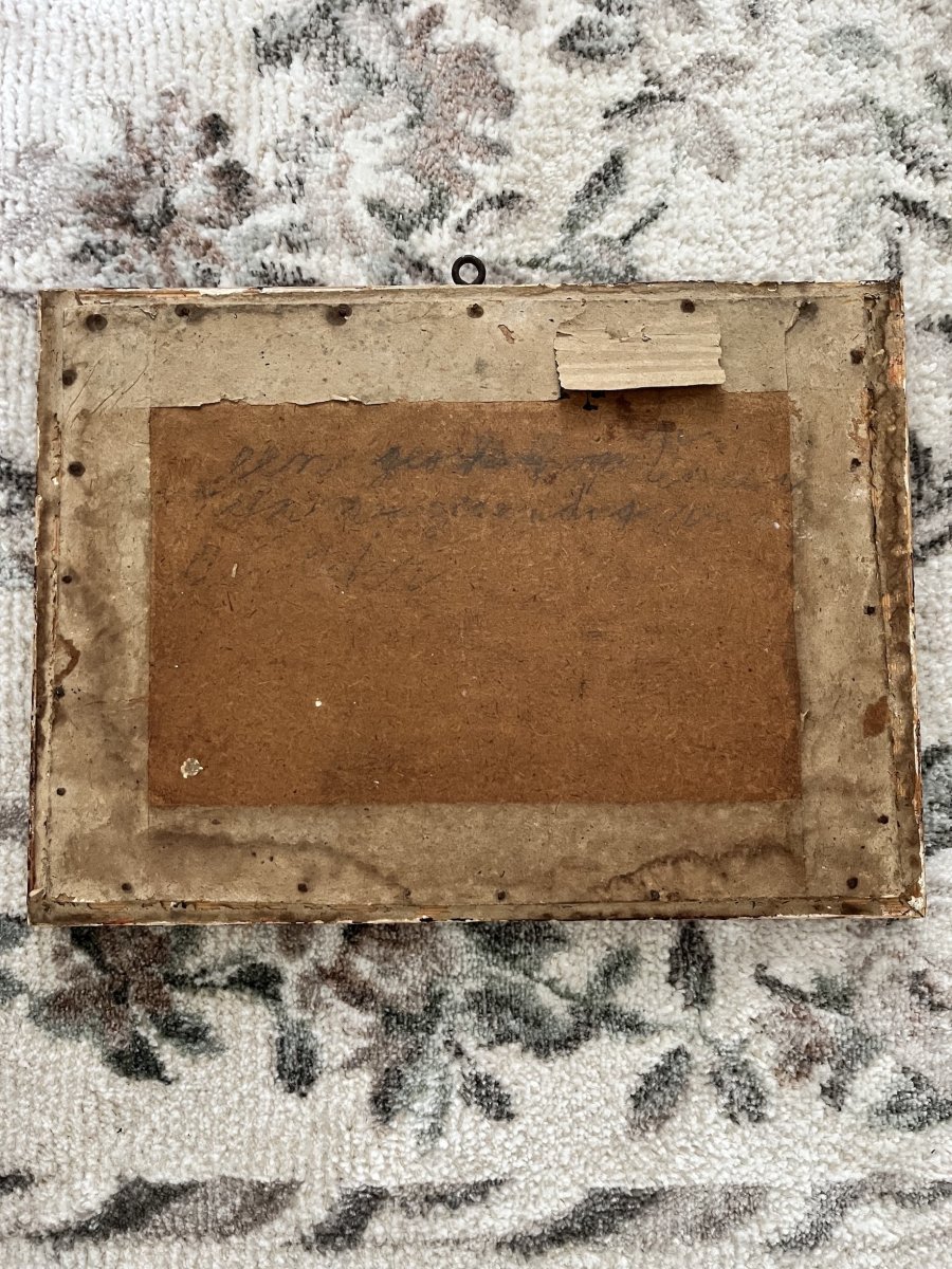 Schilderij met mooie sleetse lijst en zwanentafereel.