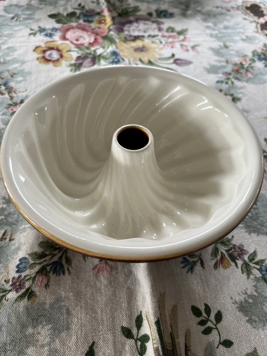 Bruin geglazuurde vorm met room-witte binnenkant.
